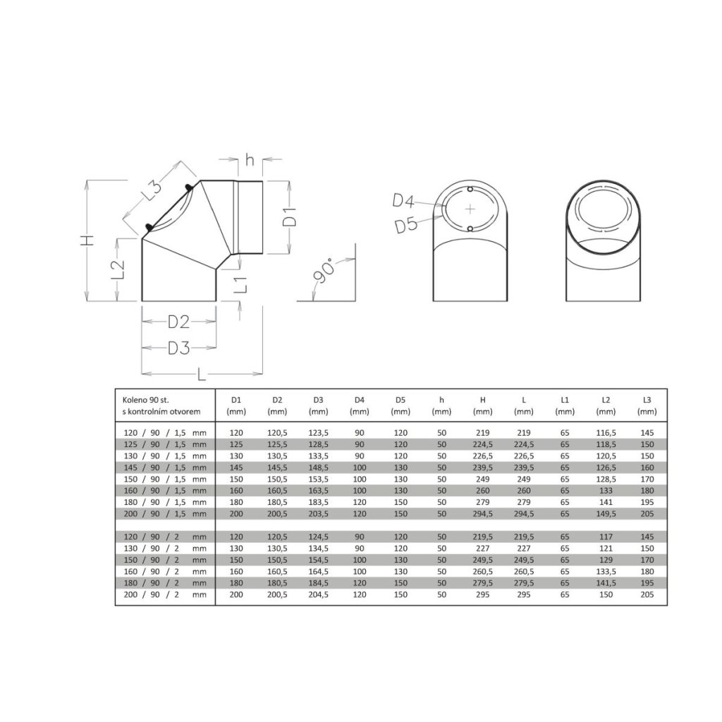Koleno 90°/120 mm/1,5 mm s čistícím otvorem