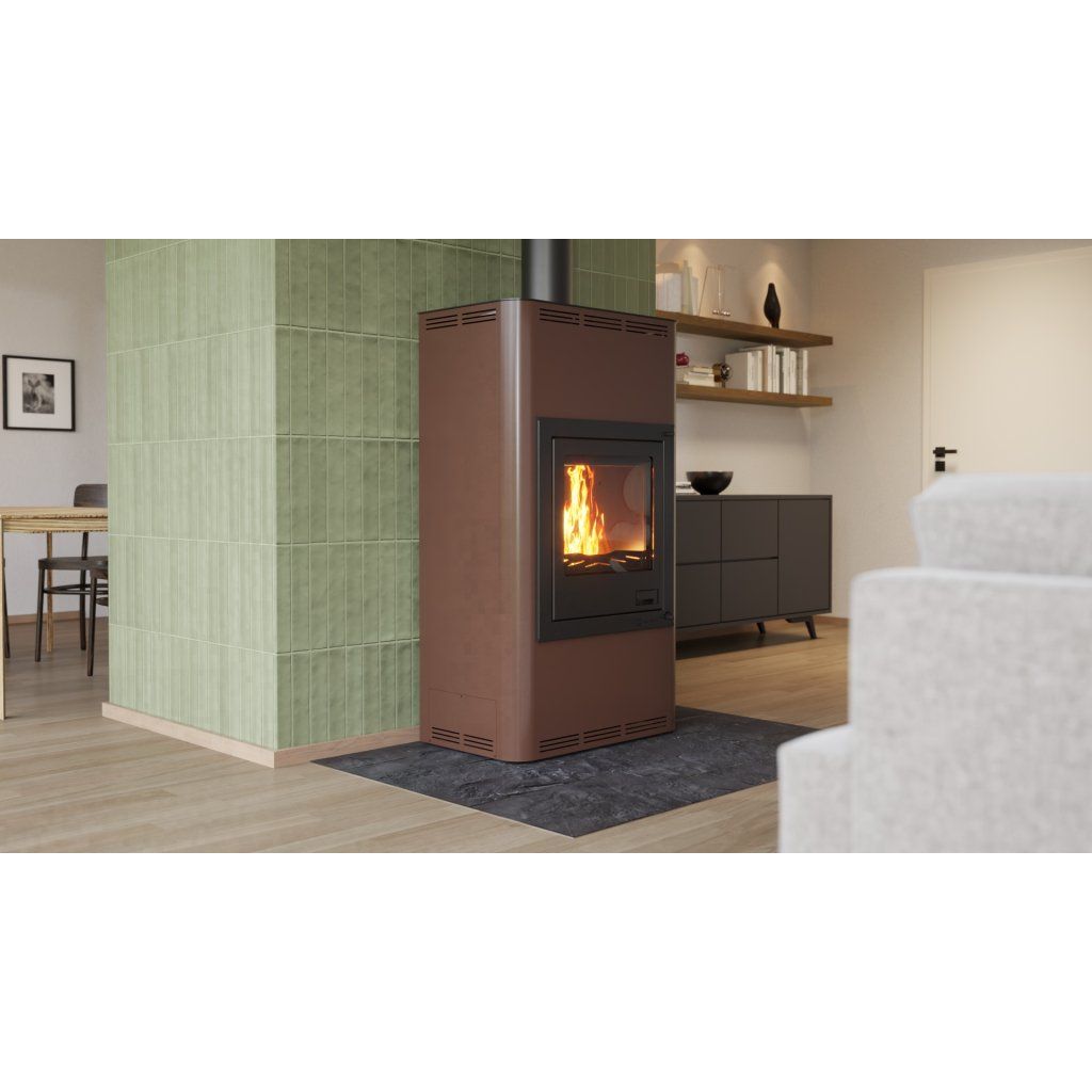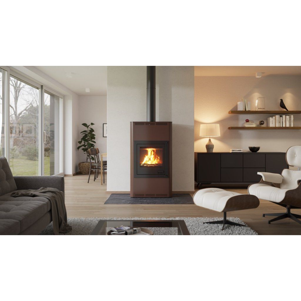 Krbová kamna AQUAFLAM 17 v hnědé sametové barvě jsou ideálním řešením pro efektivní vytápění středně velkých prostor. Tato kamna nabízejí elegantní design, vysokou účinnost a spolehlivost. Jsou navržena tak, aby splňovala přísné evropské emisní normy jako BImSchV – Stufe 2, 15a B-VG, DINplus a Flamme Verte.