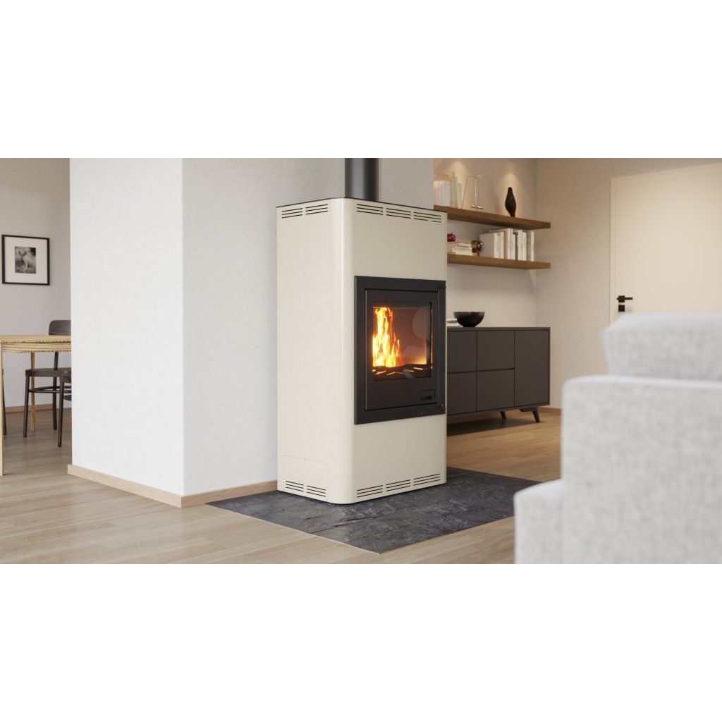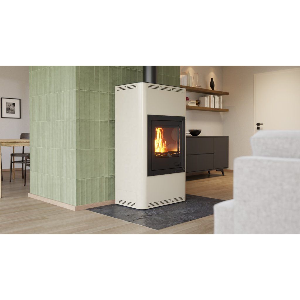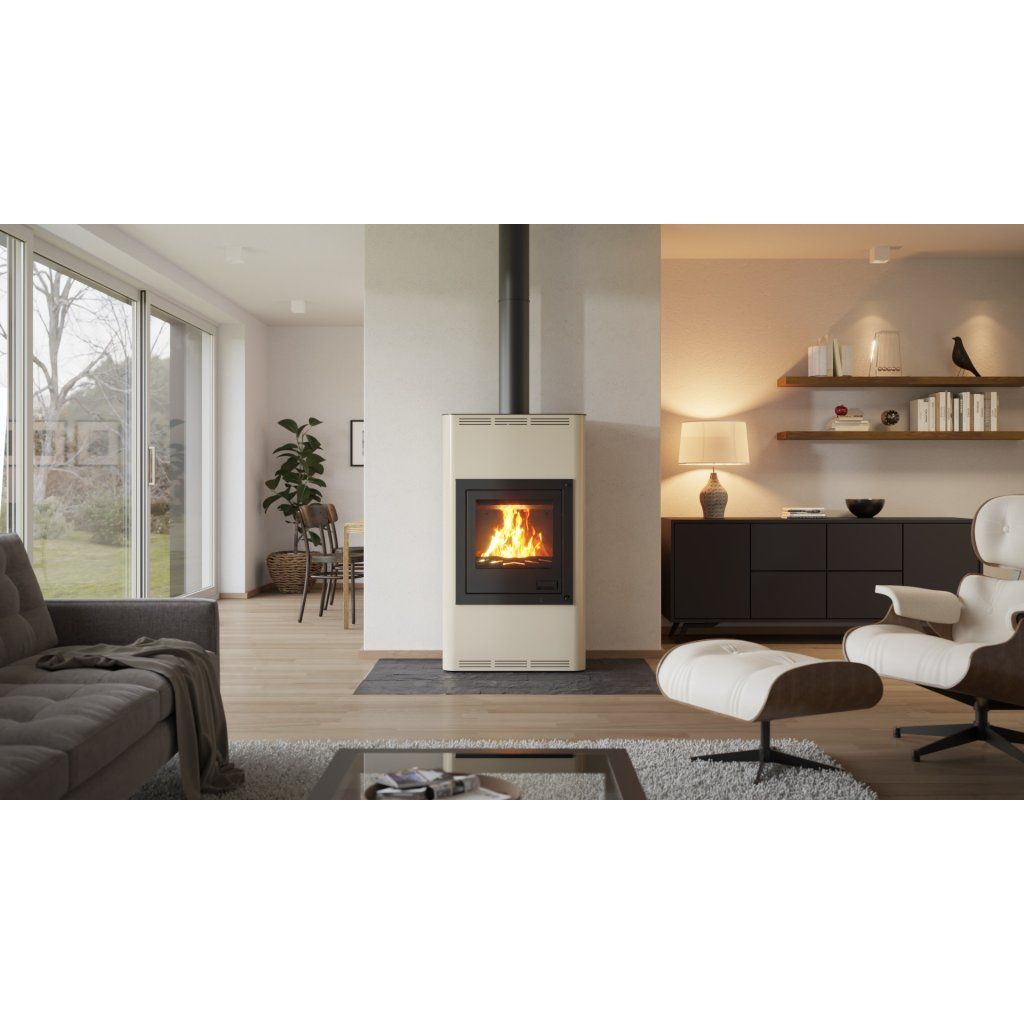 Krbová kamna AQUAFLAM 17 v krémové barvě jsou ideálním řešením pro efektivní vytápění středně velkých prostor. Tato kamna nabízejí moderní design, vysokou účinnost a spolehlivost. Jsou navržena tak, aby splňovala přísné evropské emisní normy jako BImSchV – Stufe 2, 15a B-VG, DINplus a Flamme Verte.