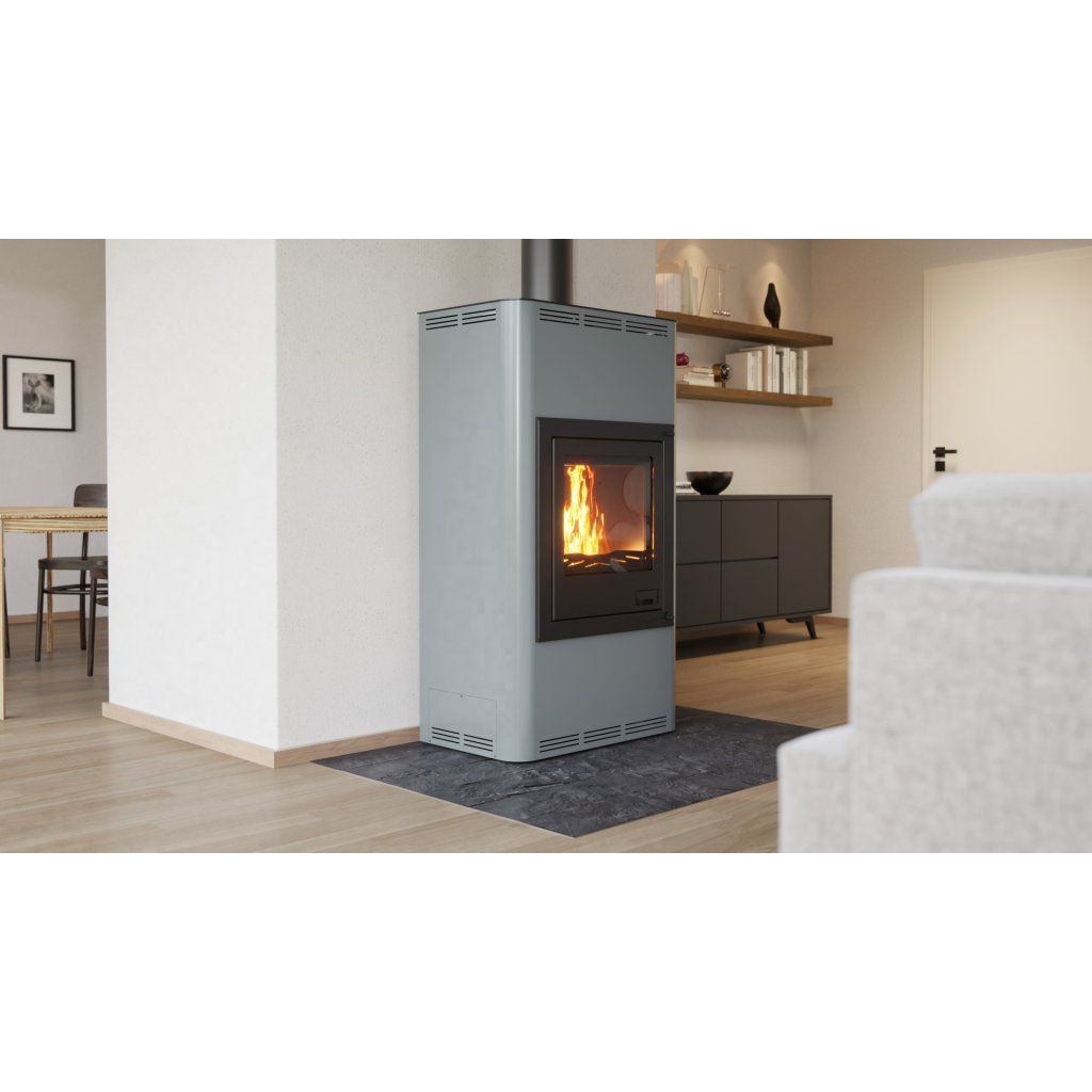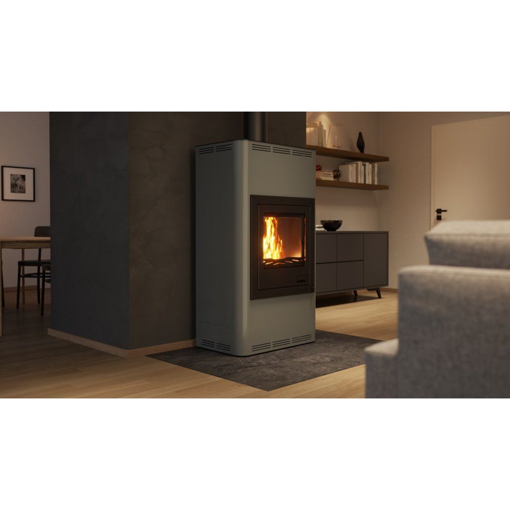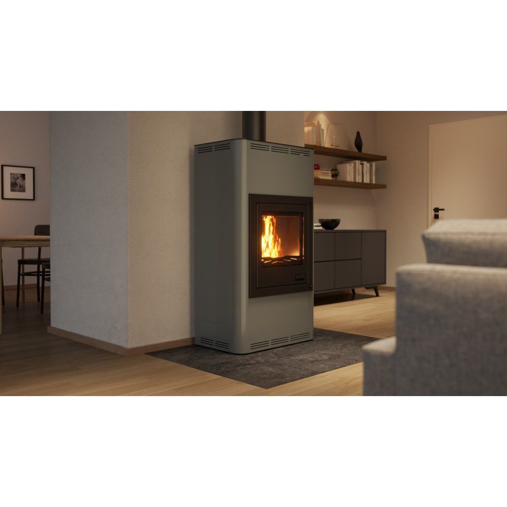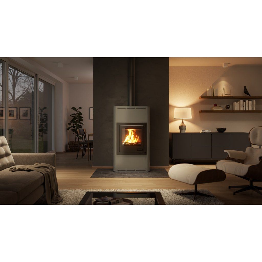 Krbová kamna AQUAFLAM 17 v šedé barvě jsou ideálním řešením pro efektivní vytápění středně velkých prostor. Tato kamna nabízejí moderní design, vysokou účinnost a spolehlivost. Jsou navržena tak, aby splňovala přísné evropské emisní normy jako BImSchV – Stufe 2, 15a B-VG, DINplus a Flamme Verte.