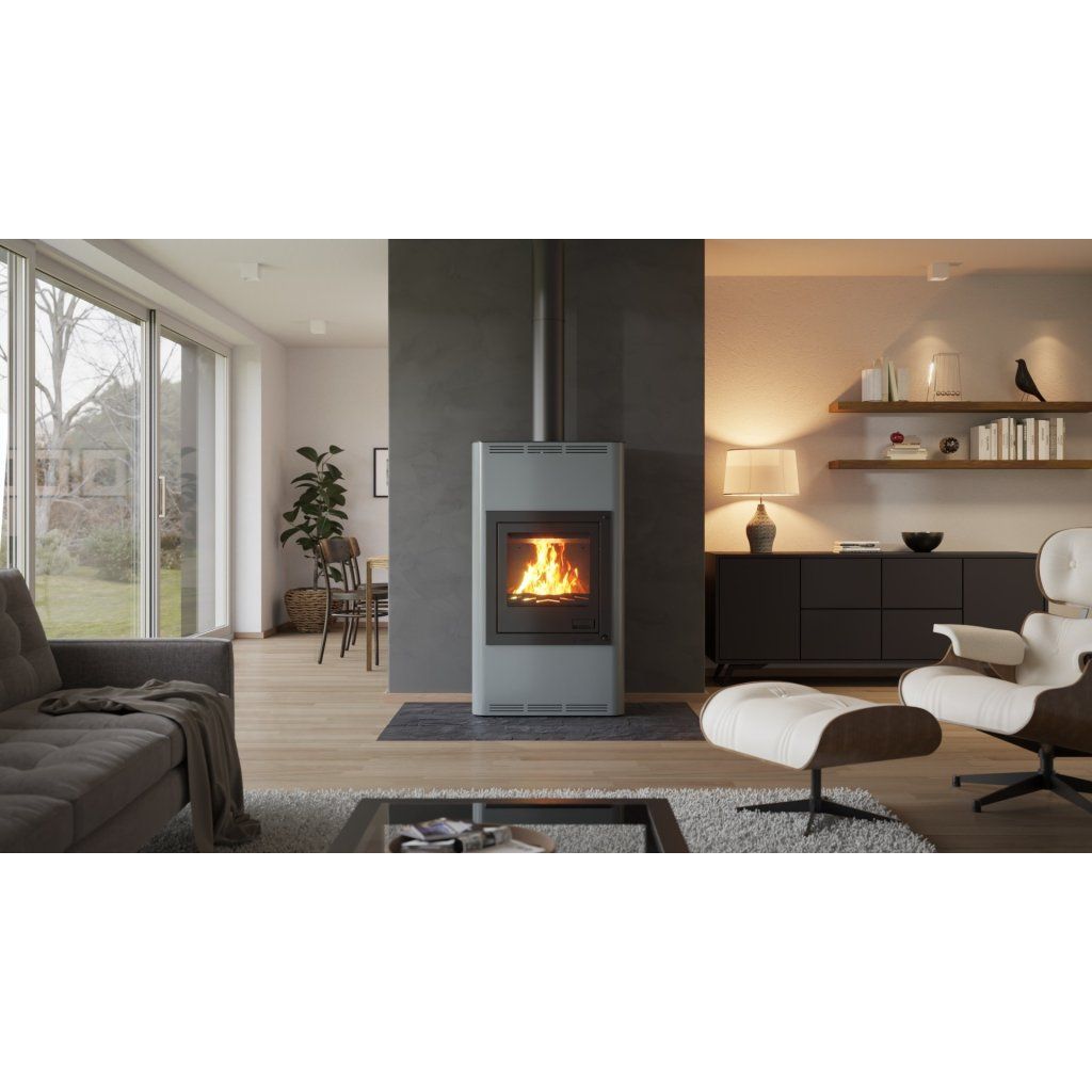 Krbová kamna AQUAFLAM ® 17 s výměníkem - šedá, základní regulace