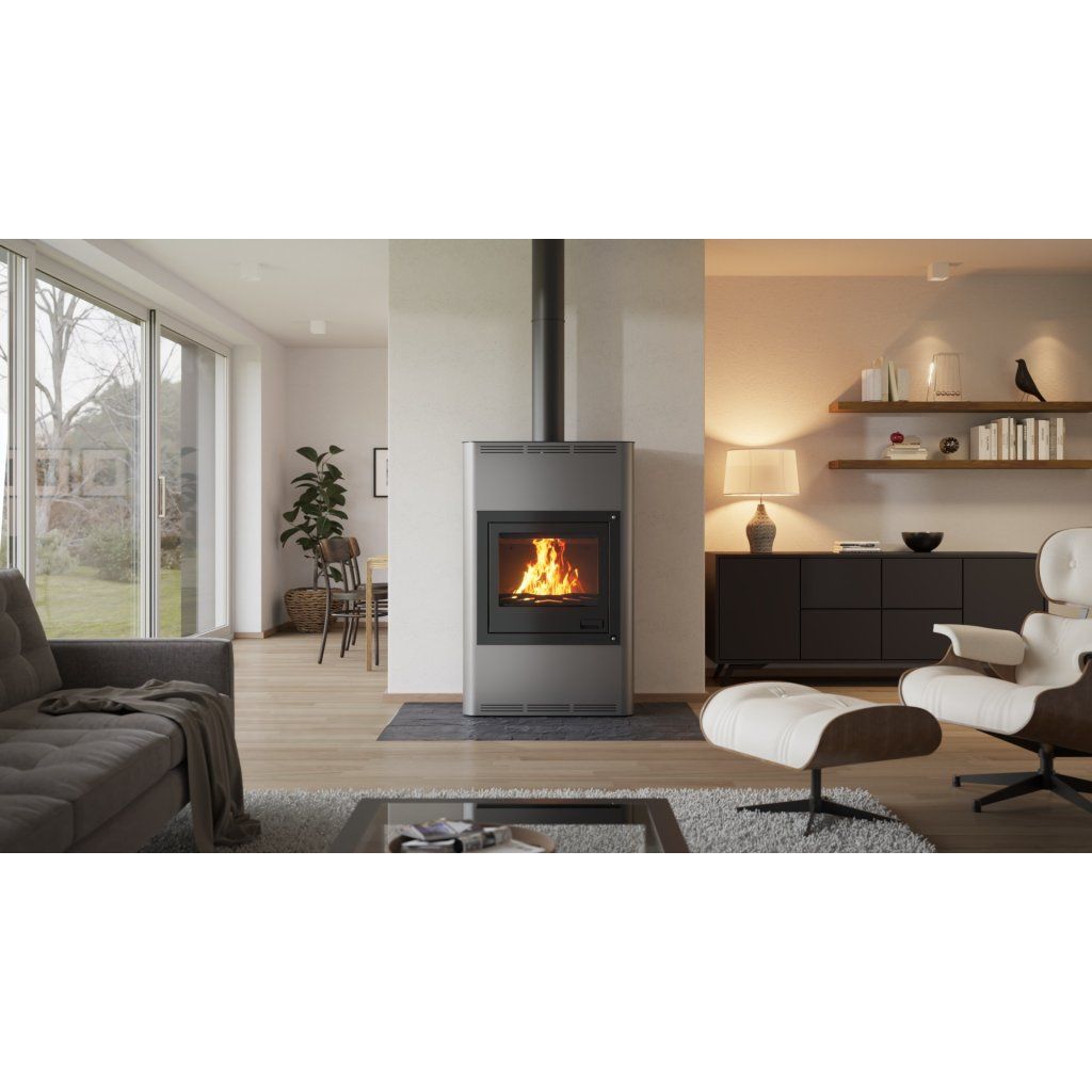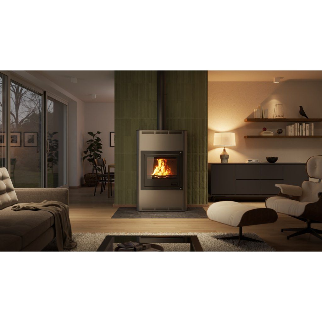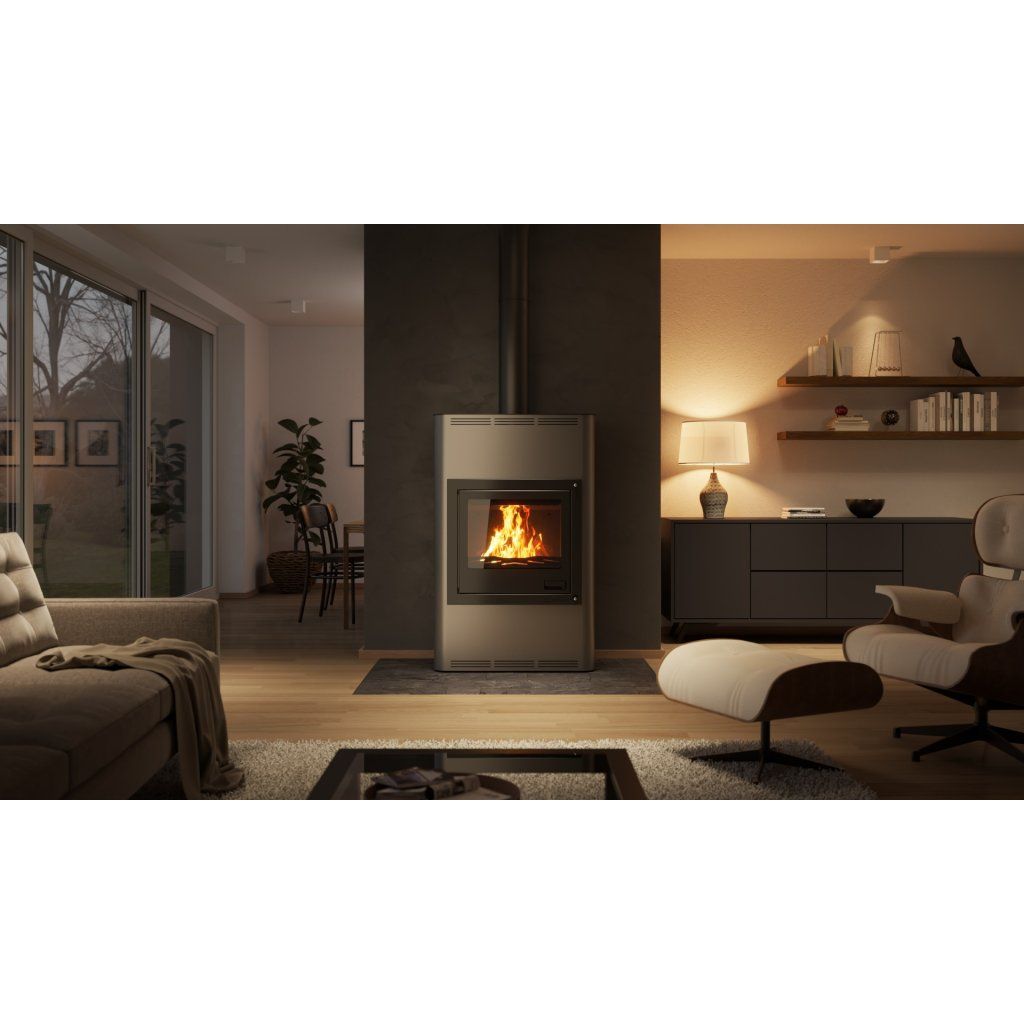 Krbová kamna AQUAFLAM® 25 s výměníkem – šedá, s automatickou regulací