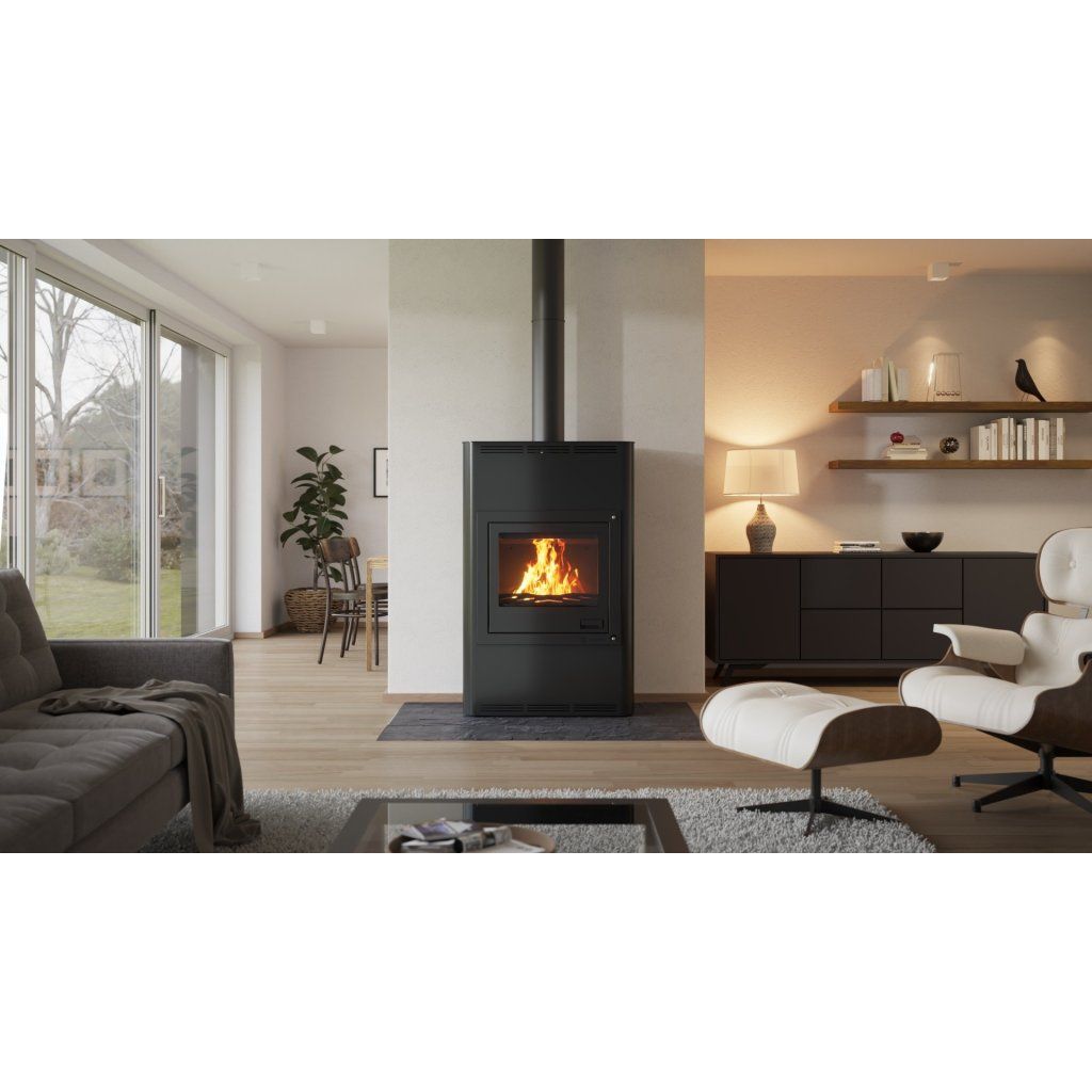 Tímto způsobem kamna AQUAFLAM® 25 efektivně vytápějí celý dům prostřednictvím radiátorů nebo akumulační nádrže, aniž by nadměrně ohřívala prostor kolem nich.