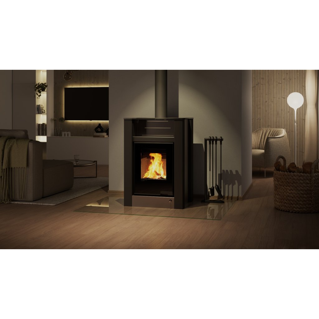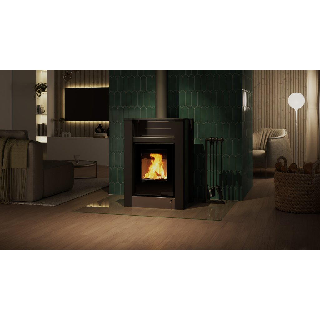 Nejmodernější teplovodní kamna, splňující nároky i těch nejnáročnějších zákazníků. Vysoce efektivní a ekologicky šetrná. Technologie sekundárního spalování s účinností přesahující 80%. Jedinečné řešení, které nabízí jednoduchý přechod z teplovodního na teplovzdušný způsob vytápění. Vyrobena z nejkvalitnějších materiálů, dle technologie, splňující nejpřísnější Evropské normy. Teplovodní výměník je standardně vybaven ochlazovací smyčkou, chránící proti přetopení. Přívod terciárního vzduchu pro dokonalé spalování a stálý přísun vzduchu. Možnost napojení externího přívodu vzduchu je samozřejmostí. Varianta integrované elektronické regulace přívodu vzduchu automaticky chrání proti přetopení.