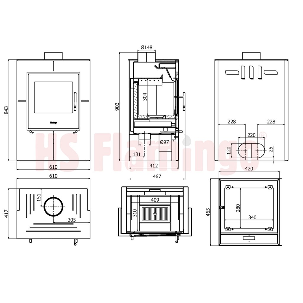Rozměr topeniště (Š x V x H): | 405 x 280 x 310 mm |