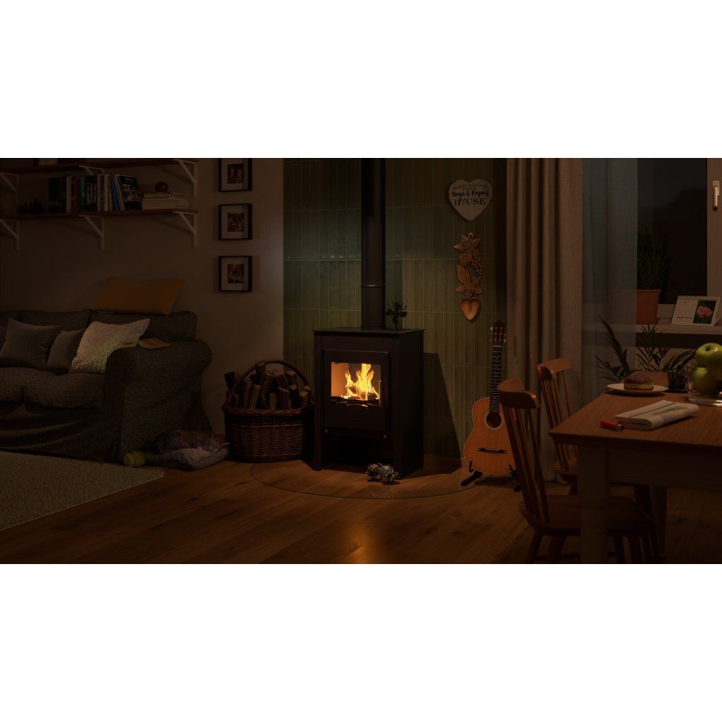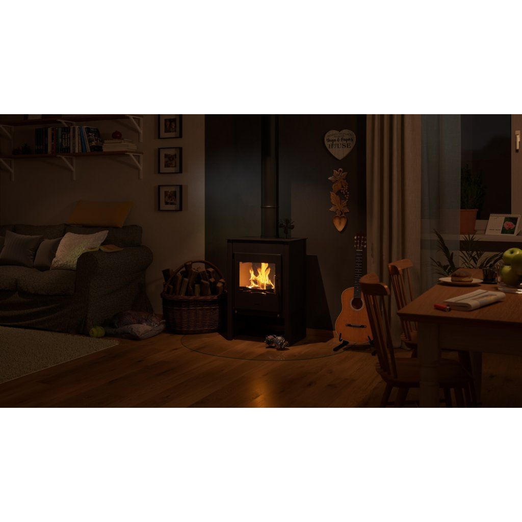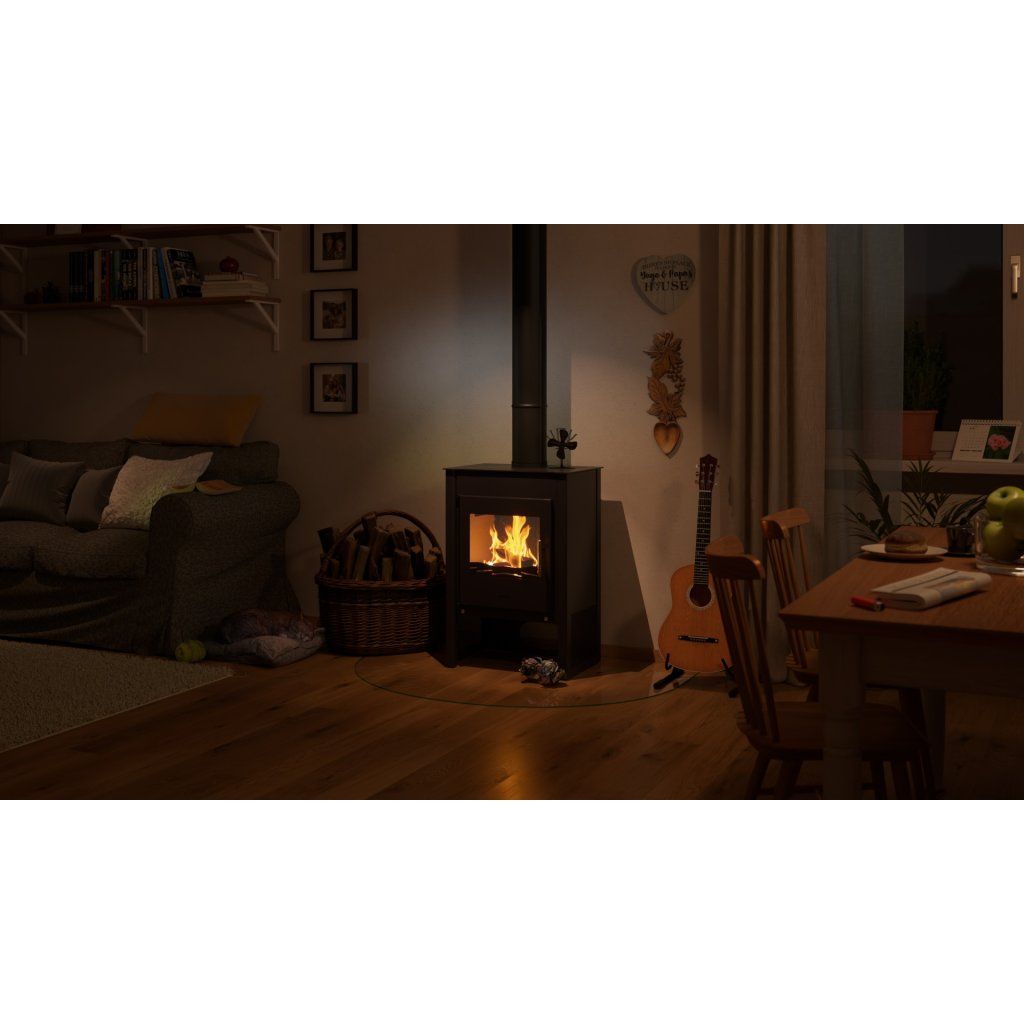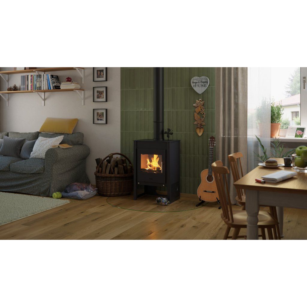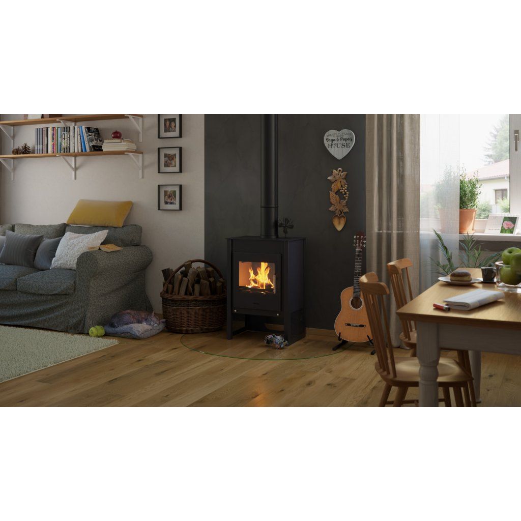 Průměrná spotřeba dřeva činí přibližně 2,5 kg za hodinu, což dělá z kamen KUALA úsporné a praktické řešení pro každodenní topení.
