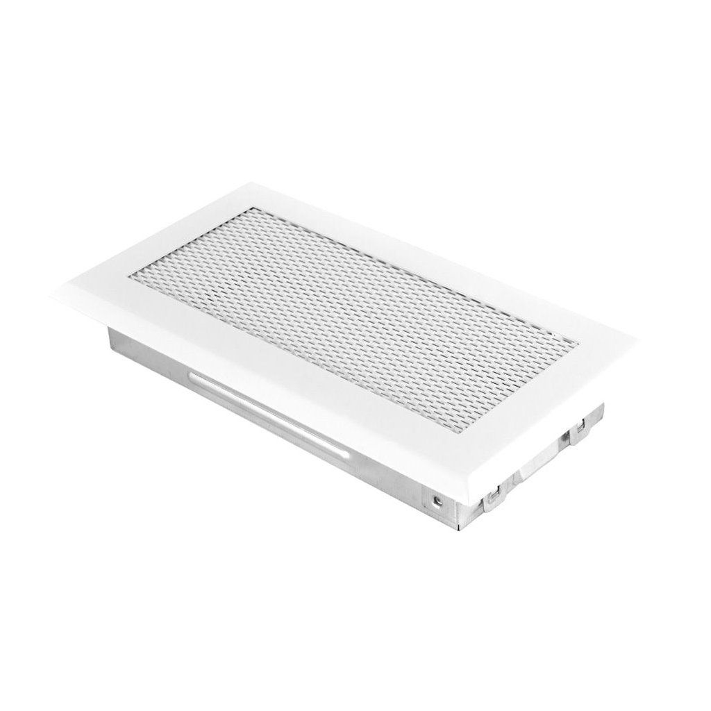 Ventilační mřížky různých rozměrů a v několika barvách. Ocelové s montážním rámečkem, lakované práškovou barvou vysoké kvality, která je odolná vůči vysokým teplotám. I po několikaletém provozu zachovává svůj původní lesk a odstín. Mřížky plní též funkci dekorační. Slouží ke clonění ventilačních otvorů. Jsou vyrobeny z ocelových částí a příslušně upraveny technologickým procesem. Tento typ mřížek je určen pro montáže do komínových sopouchů, stěn a podlah (nepoužívat na stropech).Doplňkové parametry