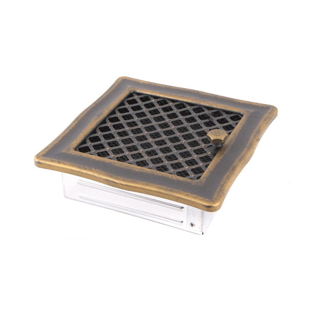 Krbová mřížka 16x16 cm, PREMIUM DECO zlatá patina s žaluzií