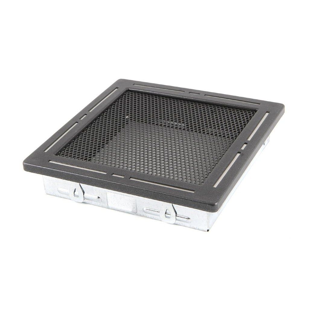 Ventilační mřížky různých rozměrů a v několika barvách. Ocelové s montážním rámečkem, lakované práškovou barvou vysoké kvality, která je odolná vůči vysokým teplotám. I po několikaletém provozu zachovává svůj původní lesk a odstín. Mřížky plní též funkci dekorační. Slouží ke clonění ventilačních otvorů. Jsou vyrobeny z ocelových částí a příslušně upraveny technologickým procesem. Tento typ mřížek je určen pro montáže do komínových sopouchů, stěn a podlah (nepoužívat na stropech).Doplňkové parametry