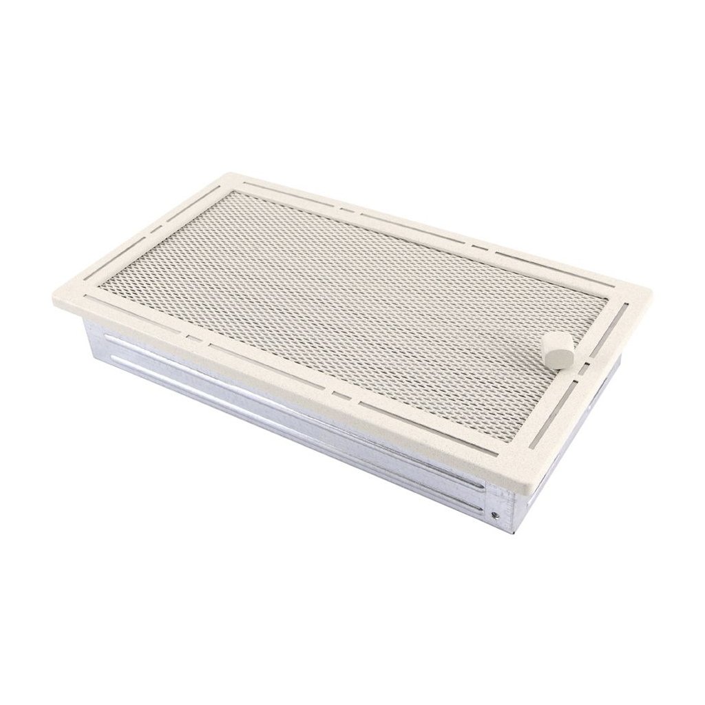 Ventilační mřížky různých rozměrů a v několika barvách. Ocelové s montážním rámečkem, lakované práškovou barvou vysoké kvality, která je odolná vůči vysokým teplotám. I po několikaletém provozu zachovává svůj původní lesk a odstín. Mřížky plní též funkci dekorační. Slouží ke clonění ventilačních otvorů. Jsou vyrobeny z ocelových částí a příslušně upraveny technologickým procesem. Tento typ mřížek je určen pro montáže do komínových sopouchů, stěn a podlah (nepoužívat na stropech).Doplňkové parametry
