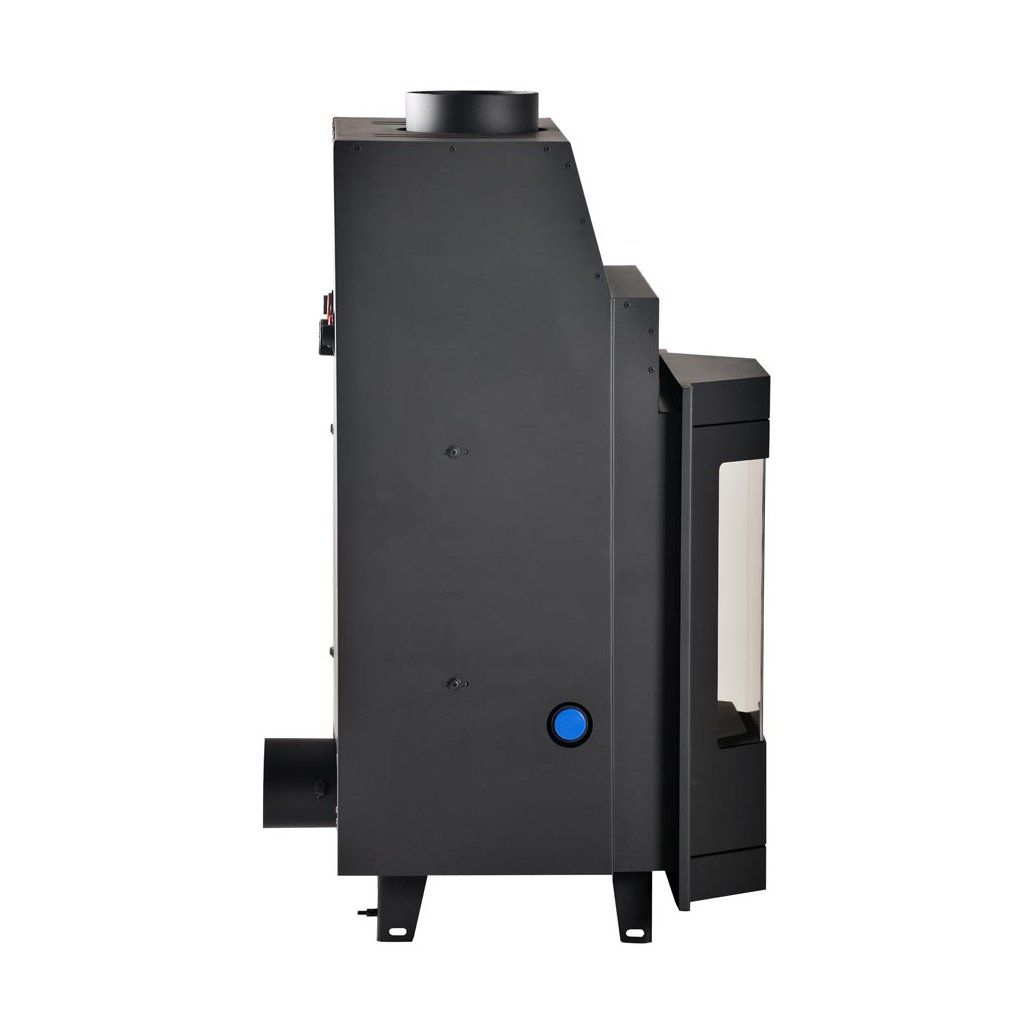Vlastnosti: Dvojitý oplach skla, 3 bezpečnostní prvky, základní regulace hoření, demontovatelný rám, přípojky vody na obou stranách, klapka komínového tahu, zvukový hlásič přetopení.