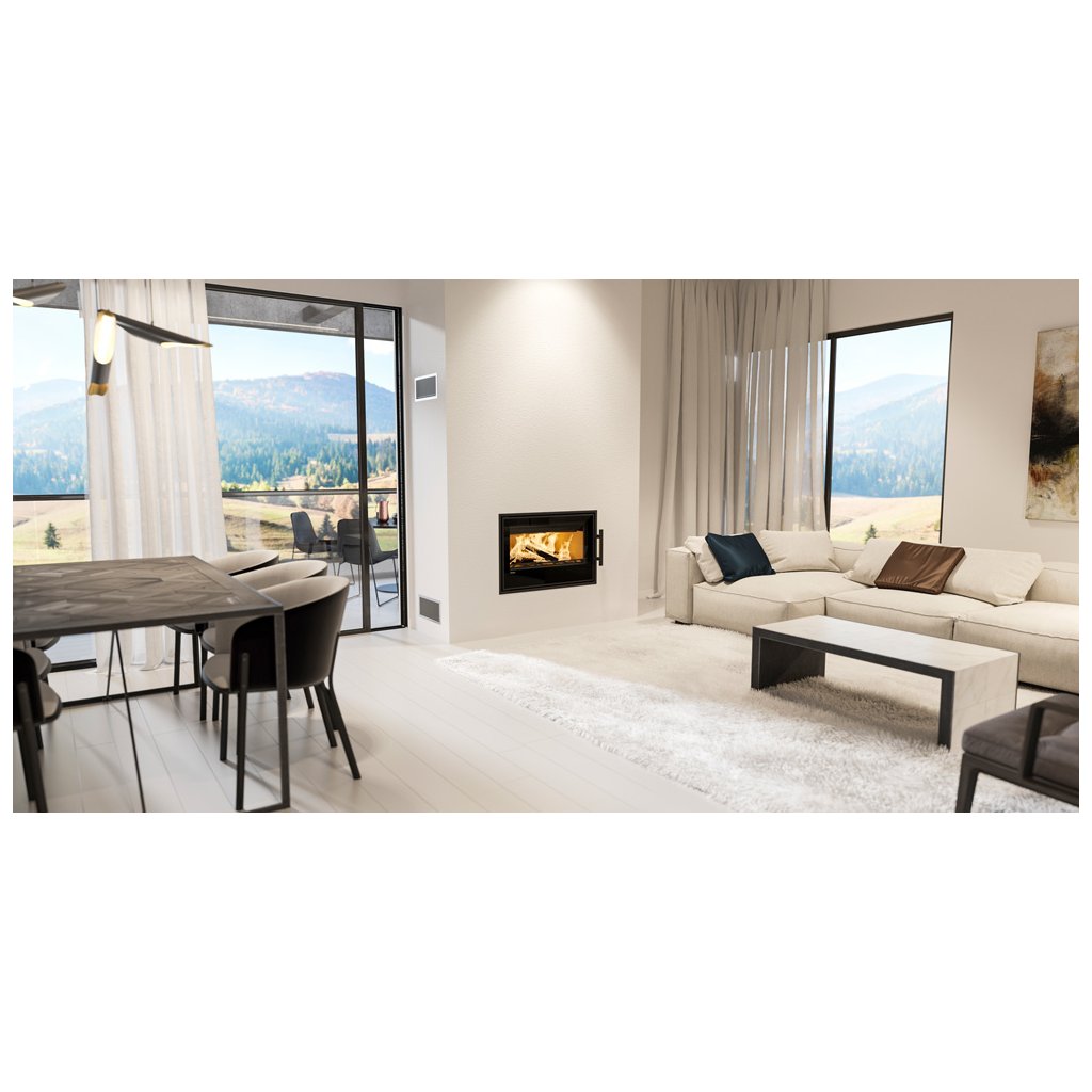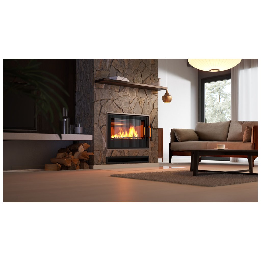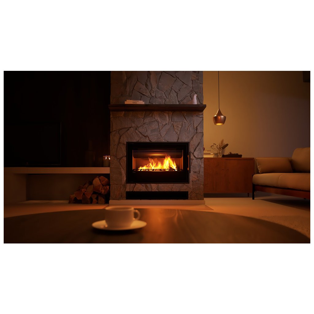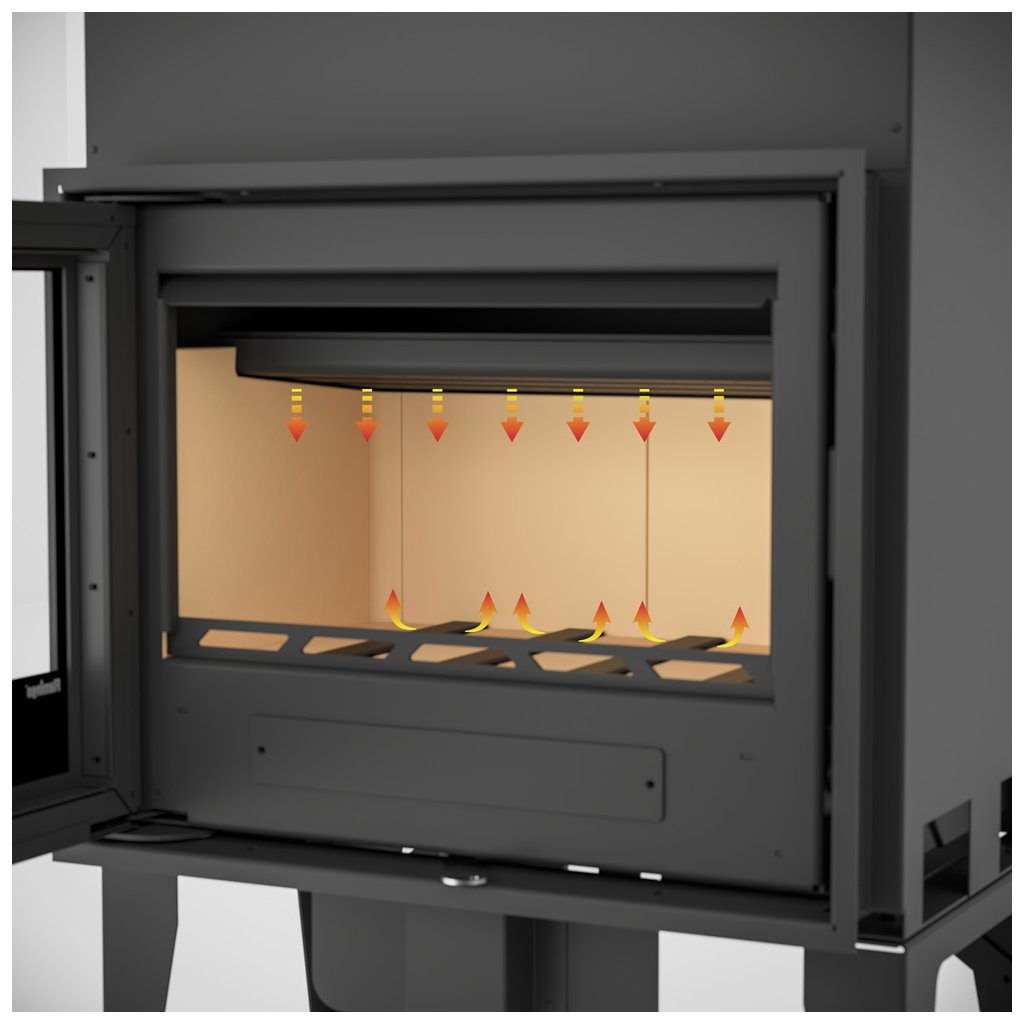 Revoluční řešení spalovací komory nabízí nepřekonatelný zážitek z ohně. Dřevo hoří po celé ploše dna, díky systému bezroštového spalování a systému kanálků na přívod vzduchu. Výsledkem je minimální spotřeba paliva. Pohled do ohně jsme povýšili na novou úroveň.