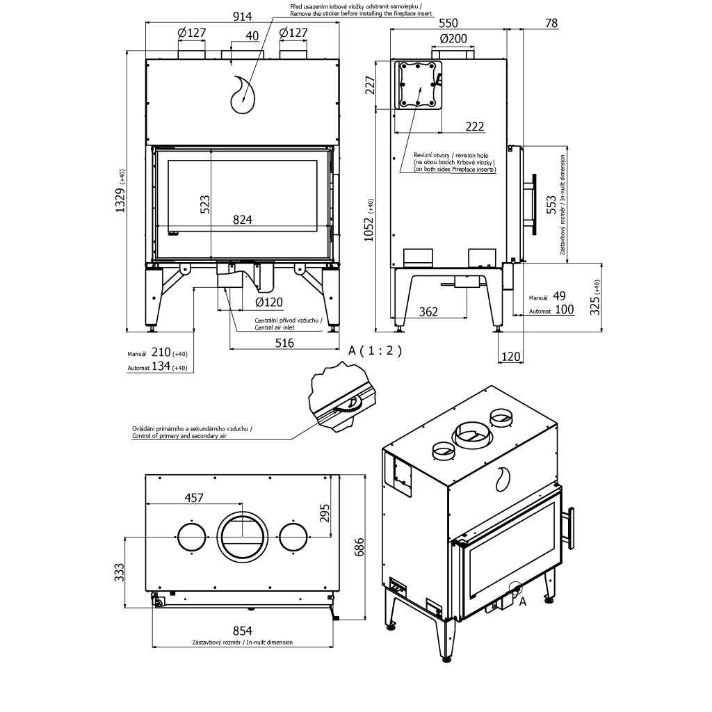 Manuální regulace - nerezové ovládání přímo na krbové vložce. Pomocí ovladače přívodu vzduchů si sami nastavíte optimální výkon. Ovladač je velice jednoduše ovladatelný a nepůsobí rušivě.