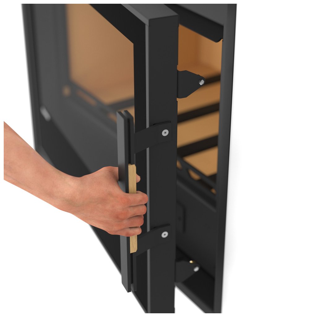 Otevírání u krbových vložek Flamingo je velice jednoduché a bezpečné. Zvolili jsme systém jak jej znáte například u lednic, kde stačí pouze zabrat a dvířka jsou otevřená. Žádné kličky a riziko popálení.