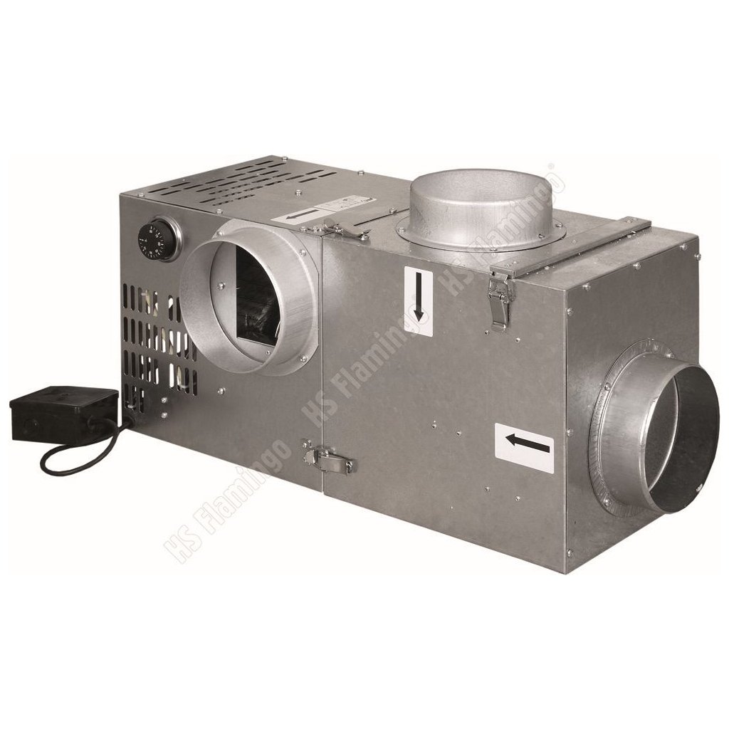 Ventilátor s termostatem určený k nucenému oběhu horkého vzduchu. Termostat se zapíná, když teplota vzduchu proudícího zařízením dosáhne požadované hodnoty, a vypíná se, když teplota požadované hodnoty nedosahuje. Ventilátor může pracovat rovněž v nepřetržitém provozu. Systém potrubí s obdélníkovým nebo kulatým průřezem umožňuje rozvod horkého vzduchu na větší vzdálenost. Vytvořený tlak zajišťuje rozvod horkého vzduchu do několika místností současně. Ventilátor je konstruována pro nepřetržitou práci při teplotách od +20 do +150°C. Ventilátor lze připojit k automatickému regulátoru otáček.