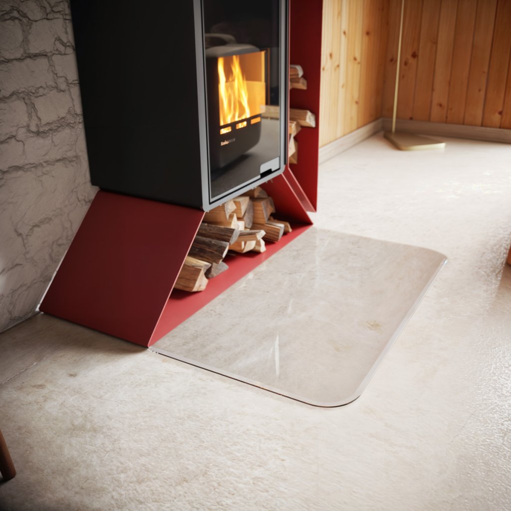 Sklo je vhodné pod většinu typů krbových kamen a s nosností až 250 kg bez problémů unese i těžší modely. Díky svému čistému designu zapadne do moderních i rustikálních interiérů.